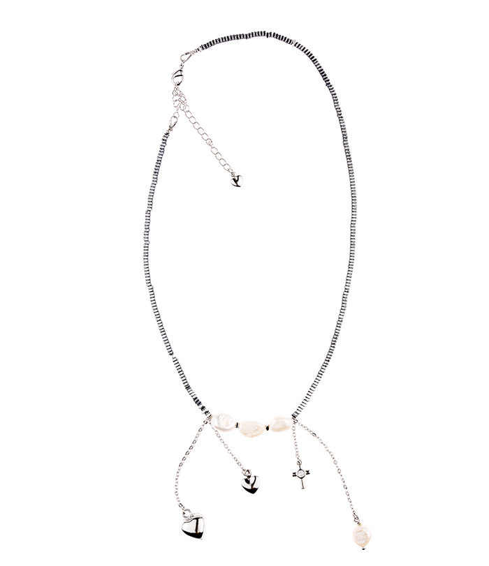 Серебряный блеск гематита и сияющего натурального жемчуга создают неповторимое колье, идеально подходящее для смелых и стильных женщин!