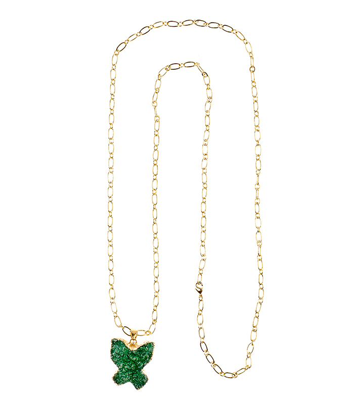 Изысканное колье на длинной цепочке с подвеской из друзы — воплощение элегантности и природной красоты.